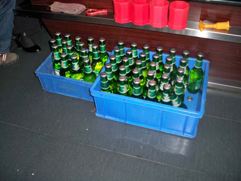 Also wie versprochen das erste Bild aus einem KTV, es folgen garantiert noch vieeeeele, richtig Lustige. ;=) (Die Box mit Bier (50Stück) hat übrigens 10€. Da hier eigentlich kein Bier gut schmeckt kann man sich auch Billiges kaufen. Weil die Import-marken eh umgefüllt werden…)