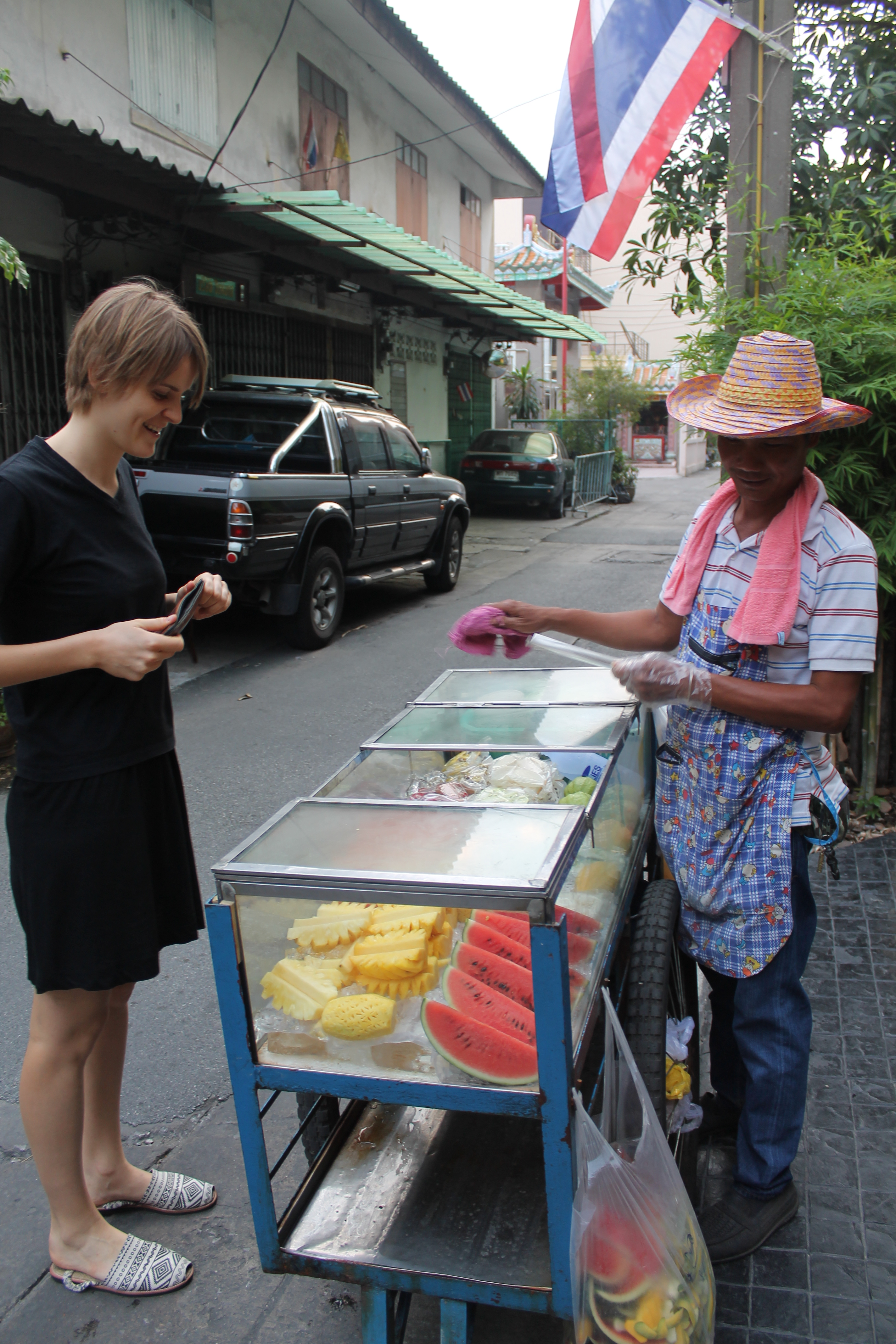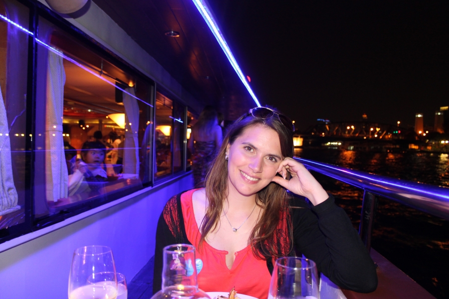 Am nächsten Tag fingen wir mit einem Besuch auf einem einheimischen Markt und in Chinatown an. Bis Tobi mich dann am Abend wieder überraschte 😉 Während ich auf dem Zimmer war, organisiert Tobi eine „Dinnercruse“. Es war toll und wir konnten uns Bangkok vom Wasser aus ansehen 😀 Vielen Dank!!!