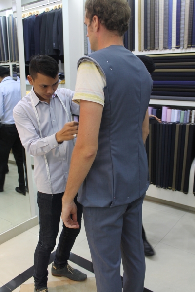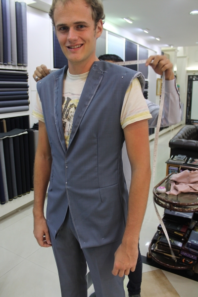 Bei unserem ersten Besuch, hatten wir uns einen guten Schneider über das Internet rausgesucht. Dieser hatte vor unserer Rundreise unsere Maße genommen und hatte nun den Grundschnitt fertig. Also mussten wir noch zur Anprobe und ein paar Änderungen machen lassen. Insbesondere mit meinem Anzug gab es ein paar Probleme, aber nachdem wir in der Werkstadt bei dem eigentlichen Scheider waren, konnte auch das gelöst werden 😉