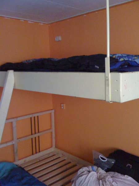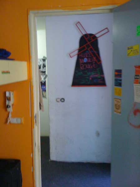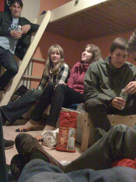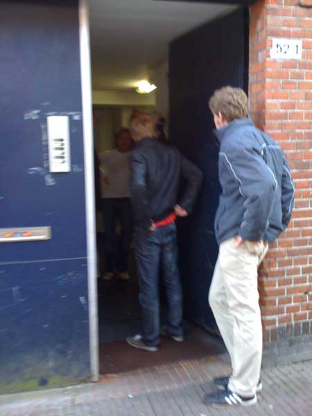 Im Anschluss daran wurden wir den Hoststudenten zugeteilt. Ich bin mit Peter, Ulf und Alexander in einem Zimmer. Zifmlich schnell haben wir mitbekommen wo das Gebäude sich befindet in dem wir schlafen: bevor wir von der Uni weggefahren sind zur Wohnung kam Herr Veldink, der Organisator, zu uns und hat sich bei uns entschuldigt. Es sei ihm ganz unangenehm, dass unser Haus in einem Rot-Licht-Distrikt sei. Dort angekommen waren wir echt über die vielen Frauen in den Fenster erstaunt – wir sind wirklich im Rotlicht Viertel… Uns Kerle stört das nicht sonderlich. Unser Hoststudent Jan Jaap ist eigentlich ganz nett. Das Foto mit dem umgeschlagenen Bolzen in der Wand ist übrigens die, die mein Hochbett befestigt…