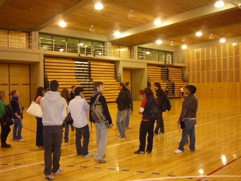 Nach diesem Teil der Einführung gab es einen kleinen Snack und wir wurden durch die Uni geführt. Dort haben wir dann Fitnessraum, Bibliothek, Sporthalle und einige Hörsalle zu sehen bekommen. Die Sporthalle blinkt und blitzt!! Das ist in Argentinien doch sehr ungewöhlich, dass etwas nicht veraucht ist oder klebt.