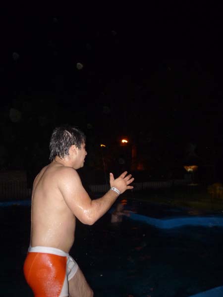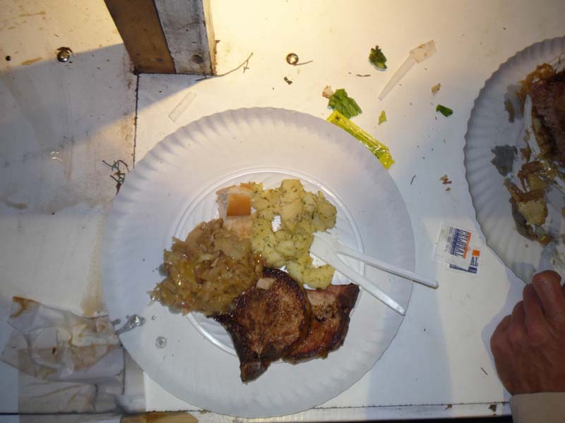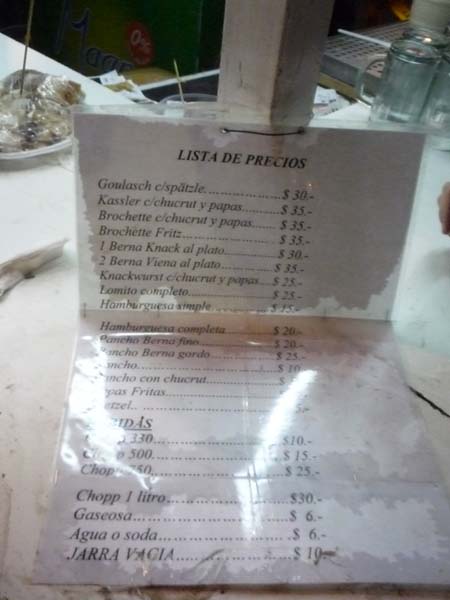 Danach startete der Regen. Hat sich richtig eingeregnet. Aber wir waren zum Glück schon zuhause. Gegen Abend hat sich das Ganze dann wieder beruhigt. Wir sind dann weiter zum Oktoberfest gezogen. (30$ Eintritt, das Kulturfest ist überall überteuert…) Dort angekommen haben wir uns dann Krüge gekauft und uns Bier einschänken lassen. Bis dann plötzlich ein Hagelschauer über uns herzog. Es war der Wahnsinn! Alle haben sich unter Plastistühlen in Sicherheit gebracht. Zu guter Letzt habe ich mir einen Braten mit Krautsalat gegönnt. Einwenig Heimat muss sein – auch wenn ich Bayern nicht als meine Heimat bezeichne. 🙂 Wir sind dann gemeinsam weitergezogen. Als wir dann im Hostel der anderen ankamen hat man den Größenunterschied der Krüge feststellen können. Die beiden Mexikaner und ein Argentinier haben sich größe Krüge gekauft ich nicht. Die anderen sind nachts in den Pool gesprungen, ich nicht. Das Wasser war so kalt. Selbst sturzbetrunken haben die am ganzen Leib gezittert. Während der Nacht fällt die Temperatur sehr stark.