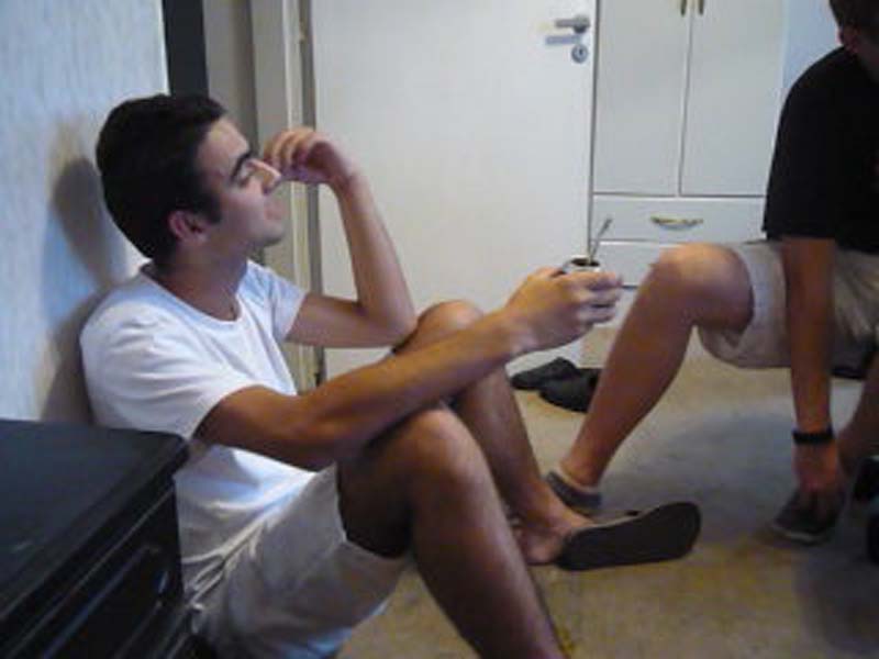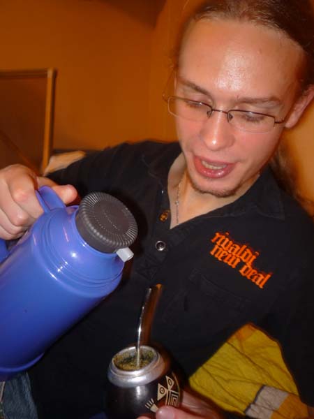 Nach einer laaangen Nacht haben wir am nächsten Morgen gegen 6 Uhr mit Maté trinken angefangen. Ich dachte eigentlich, dass Rührei angesagt wäre, dem war aber nicht so. Auf den ein oder anderen hatte der Tee wohl eine recht stimmulierende Wirkung.Nachdem ich nun 50 mal Fahrstuhl aus dem 10. Stock hoch unter runter fahren musste, quietscht der Fahrstuhl beim Anhalten im 10. Stock! – Somit war die Idee vom Balkon runter zu gehen wohl eine Gute. 😉