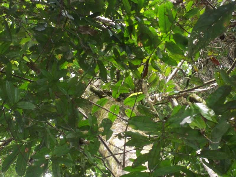 Am dritten Tag durften wir etwas ausschlafen, denn Frühstück gab es erst um 8.00 🙂 Danach sind wir mit dem Kanu an eine Stelle zum Wandern gefahren, wo auch die Eingeborenen selten unterwegs sind, denn hier leben die größeren Tiere ungestört. Auf dieser Tour haben wir wieder einige Spinnen, Schlangen, Affen, sogar ein Faultier und einen Teufelsrochen gesehen. Dann wieder zurück zum Mittag essen etwas ausruhen (über 30C ° und 99% Luftfeuchtigkeit machen einem dann doch zu schaffen). Danach sind wir mit dem Boot los gefahren zum Piranhas angeln. Tobis erstes mal angeln in seinem leben und schon hatte er nen Piranha 🙂 Da es wieder sehr warm war, sind wir danach wieder schwimmen gegangen. Also Angeln reingeholt und in die Mitte des Sees gefahren… Zwar etwas skeptisch aber dankbar für die Abkühlung sind wir dann auch etwas zögerlich reingesprungen. Danach ging es dann wieder essen und auf eine Nachtwanderung um etwas größere Schlangen und Spinnen zu suchen. Nicht sehr angenehm, denn auf fast allen Bäumen und Blättern sitzen iregndwelche Viecher und man sieht da Nachts nur wirklich wenig.