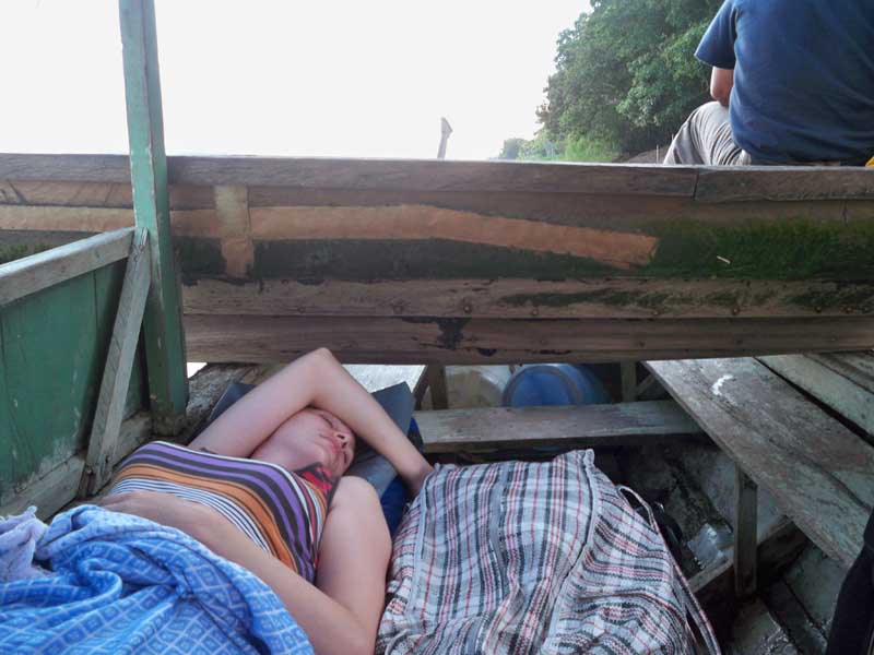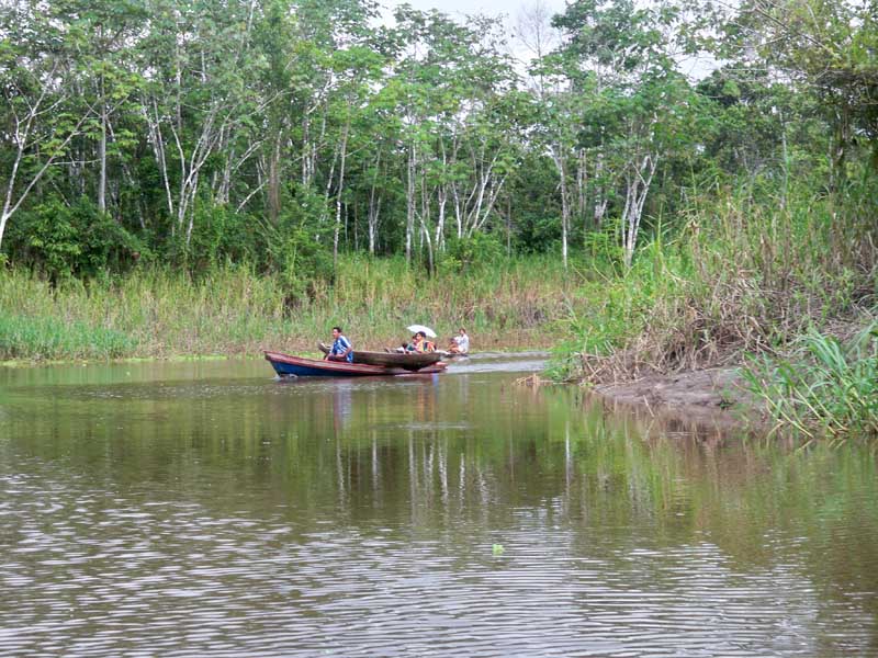 Unsere Reise in den Regenwald fing mit eine 3 stündigen Bootsfahrt über den Amazonas an, bei der nach halber Strecke unser Motor ausfiel… Also trieben wir auf einem Seitenarm so vor uns hin und mussten auf Hilfe warten. Ein einheimisches Boot ist zum Glück vorbeigekommen und hat einen der Mitarbeiter mitgenommen um nen neuen Motor aus einem befreundetem Nachbardorf zu holen.