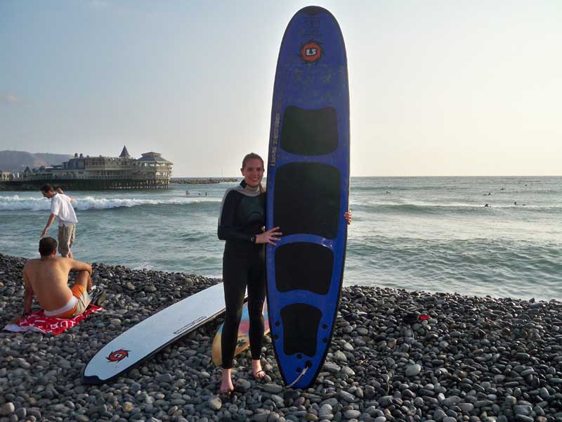 Da Lima direkt am Meer liegt, haben wir auch versucht zu surfen. Da ich mir nach dem dritten Versuch das Brett auf die Nase gehauen habe, ist es bei mir auch bei dem Versuch geblieben 😉 Bei Tobi sah das alles schon etwas besser aus, aber im Großen und Ganzen ist Windsurfen einfach geiler 🙂