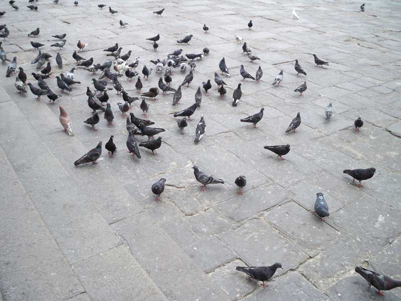 Derjenige der damals diesen Orden geführt hat, hatte auch verboten, dass die Tauben auf seinem Grundstück umgebracht werden… Was dabei raus gekommen ist, sieht man hier glaube ich ganz gut 😉 Diese Tradition wird nämlich so weiter geführt und den Touristen wir dazu noch Vogelfutter verkauft.