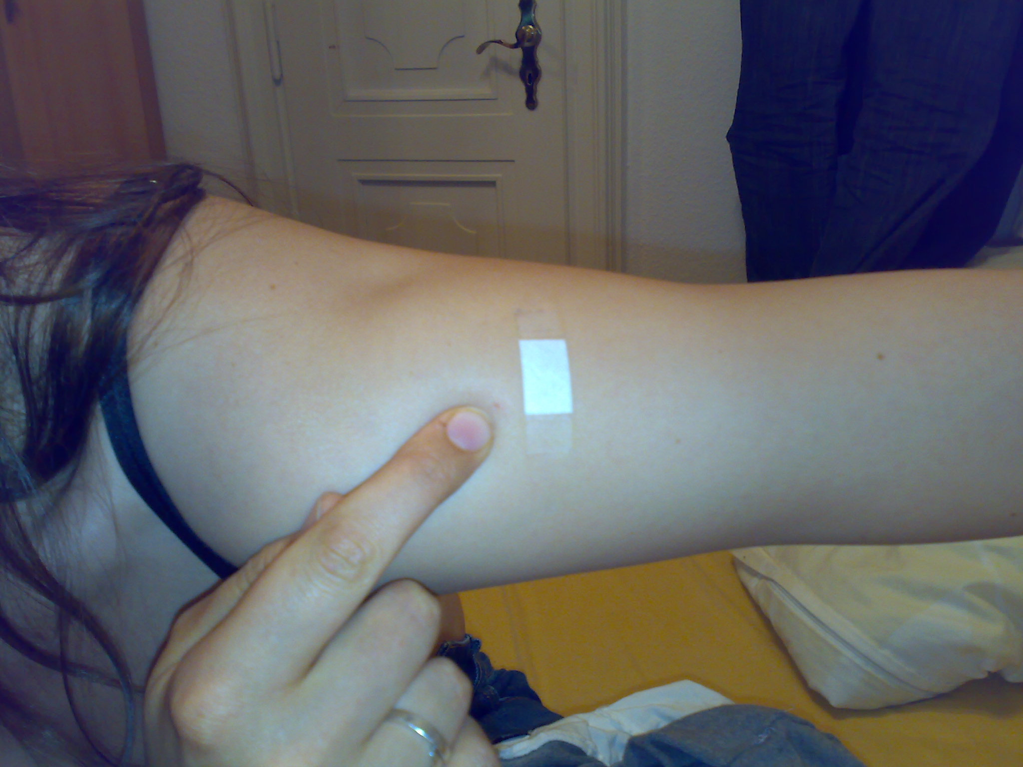 Wenn wir das nun zusammenfasse: Ich bin fast gestorben und bei Mone findet man nicht einmal den Einstich! (siehe Bild drei) Da hat sich die Ärztin mit dem Flaster doch tatsächlich verklebt!